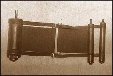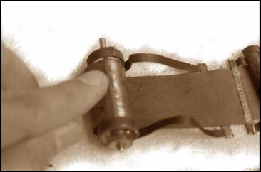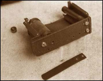Lock the rollers with their nuts and replace the lower light baffle which covers the lower part of the shutter. The baffle is clamped in place by the long release spring’s retainer. Putting this back is perhaps the next most difficult step in reassembly. The retainer can be glued to the baffle so it will be in place to receive the long spring’s bolts. |