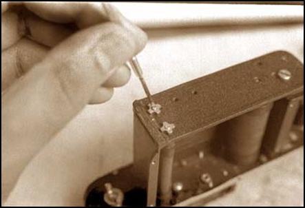 Initially tense the shutter by turning the first curtain roller’s adjusting screw. Tense it just enough to enable the roller to pull the curtain through, regardless of the camera’s position. This should take no more than four to five turns on the screw. Then tense the second roller just enough to pull it through as well, and this usually takes less, about three turns will do. The less tension required, the smoother and quieter the shutter operation will be.